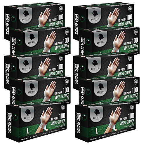 1000 Gorilla Supply Heavy Duty Vinyl Gloves Large 10 of 100 Powder Free Disposable