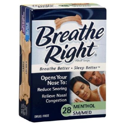 Breathe Right 28 ct. Mentholated Vapor Strips for cold and allergy relief. This pack contains small/medium size nasal strips. This size fits the majority of adults