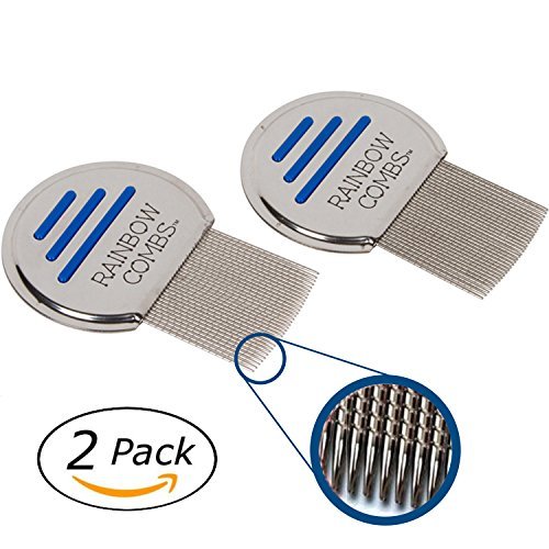 (2 Pack) Rainbow Combs- Stainless Steel Nit Free Terminator Style Fine Tooth Lice Comb, Effective Treatment to Remove Head Lice and Nits in Kids or Adults (peine para piojos y liendres)