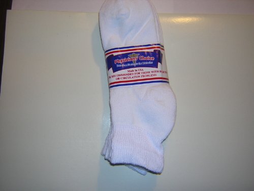 3 Pair Diabetic Socks,9-11 medium size,1/4sport length,white,Physicians Choice