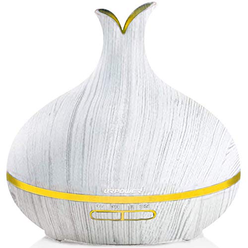 URPOWER 400ml Essential Oil Diffuser, Wood Grain Ultrasonic Aromatherapy Fragrant Oil Vaporizer Humidifier, Timer and Auto-Off Safety Switch, 7 LED Light Colors