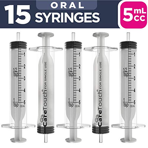 5ml Oral Syringe - 15 Syringes with Covers by Care Touch - Great for Oral Medicine and Home Care