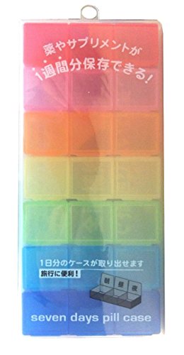 The removable rainbow pill box3 times a day7 days a week21 compartments easy and convenient one week of pills or vitamins all in one single container made in japan.