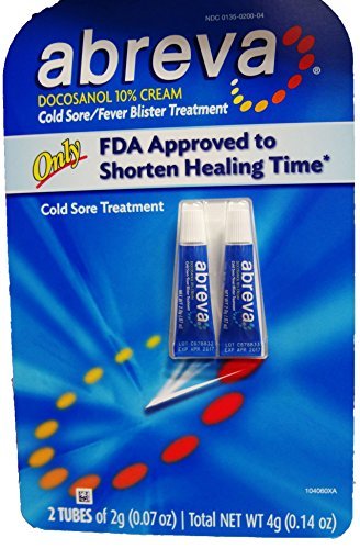 Abreva 2-0.07 OZ Cold Sore/Fever Blister Treatment, 0.14 OZ.Docosanol 10% Cream.Only FDA Approved to Shorten Healing Time.