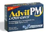 INDICATIONS: Advil PM Liqui Gels for Nighttime Sleep Aid Pain Reliever for relief of occasional sleeplessness when associated with minor aches and pains.