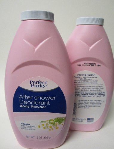 After Shower Deodorant Body Powder, with Chamomile, Baking Soda and Cornstarch, Regular 13 oz each (2 Pack)
