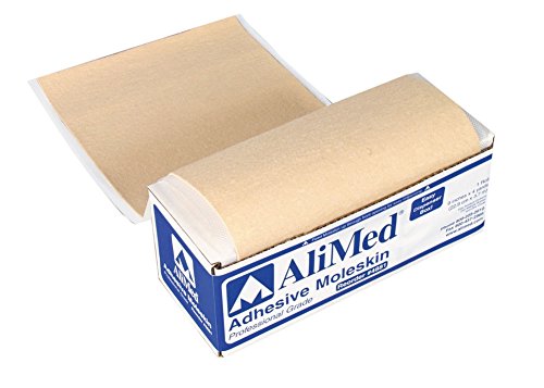 AliMed Moleskin is a soft, thick, adhesive-backed cotton cloth that protects exposed skin against painful blisters, calluses, and hot spots caused by repeated movement or friction. Also cushions corns, calluses, and other sore spots. Large, multiple-use roll can be cut to fit any size or shape. Special packaging allows for easy dispensing, no need to worry about hard-to-use cans. Dispenser box keeps unused product clean and accessible. Roll: 9" x 4 yds. Tan.