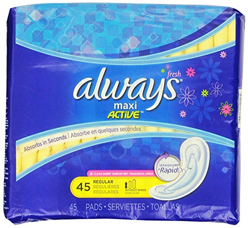 Always Maxi Feminine Pads without Wings, Regular Absorbency, 45 Count - Pack of 2 (90 Total Count)