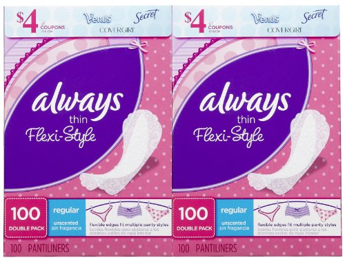 Always Thin Flexi-Style Liners-Unscented-100 ct, 2 pk