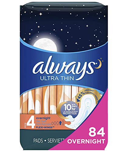 Always Ultra Thin Feminine Pads with Wings for Women, Size 4, 84 Count, Overnight Absorbency, Unscented, (28 count, Pack of 3 - 84 Count Total)