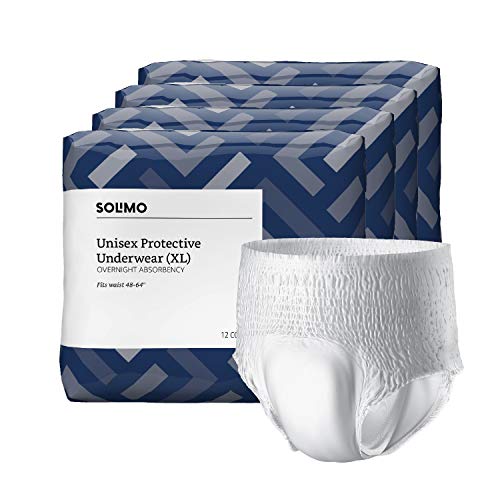 Amazon Brand - Solimo Incontinence Underwear for Men and Women, Overnight Absorbency, Extra Large, 48 Count (4 packs of 12)