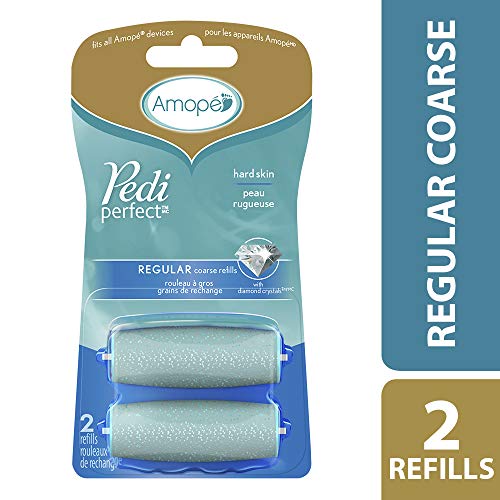 Discover why over 3 million people in the US are fans of the Amopé Pedi Perfect Electronic Foot File and get feet that look great and feel silky smooth and soft without any hassle. Gentle on your feet and easy to use, the Amope Pedi Perfect Foot File buffs away hard skin in minutes leaving you with touchably beautiful feet you will want to show off. This sophisticated pedicure tool is quite simple to use. Gently rotate the Amope Pedi Perfect Foot File over your hard, thick skin to remove dead skin from feet. The specifically designed Micralumina replaceable head is effective yet gentle which makes it an essential piece in your foot care tools. After using the Amope Pedi Perfect Foot File, combine with the use of the Amope Daily Moisturizer or other callus remover and exfoliating treatments to yield soft, beautiful feet. This pedicure tool does not contain sharp blades you would typically find in a foot shaver, so it's safe to use as directed in the home. And being powered by Four AA Batteries (included), it's the cordless electric foot file that goes with you. It's ergonomical shape makes for easy handling to yield a perfect pedi result. Pedicures have never been so easy! Pack contents: 2 Regular Coarse Replacement Roller Heads specifically designed for use on the Amopé Pedi Perfect Electronic Foot File.