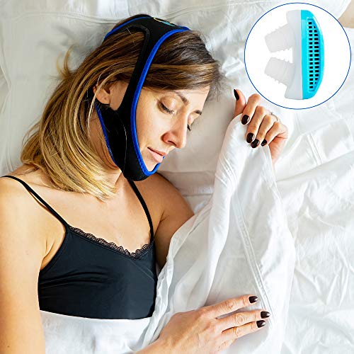 Anti Snoring Chin Strap Devices - Stop Snoring Head Mouth Straps Adjustable Belt Jaw Support Effective Sleep Aid Solution and Anti-Snoring Breathable Nose Vents Plugs Air Purifier for Men and Women
