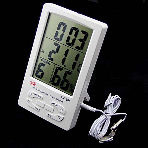 Humidity level plays an essential role in a comfortable and hygienic environment. this all-in-one hygrometer displays indoor relative humidity level. It can also be used as a clock with alarm function.The large LCD display will make everybody read time, temperature and relative humidity easily. It is also equipped with sensor probe for collecting the temperature outdoor
