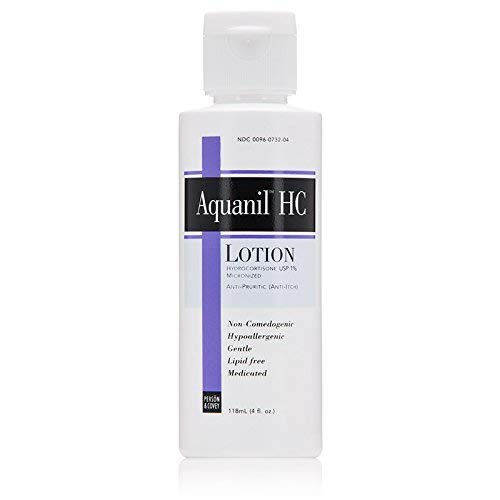 1 percent hydrocortisone in Aquanil Lotion for gentle antipruritic (anti-itch) treatment of sensitive skin. It is indicated for the temporary relief of minor skin irritation, inflammation, itching, and rashes. No lipids, non-comedogenic, and no fragrances added. Active Ingredient: Hydrocortisone USP 1 percent (micronized).