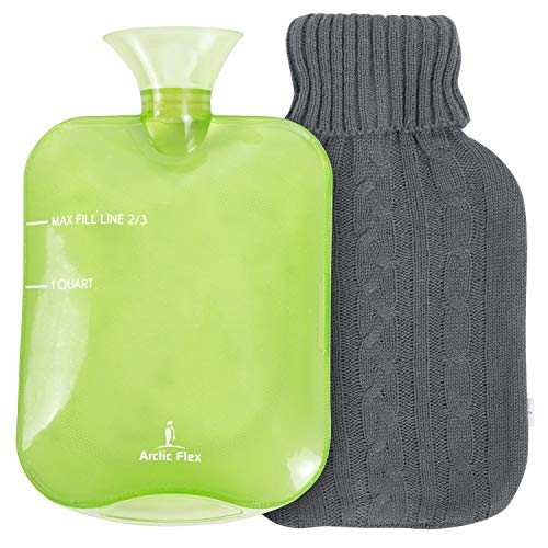 Arctic Flex Hot Water Bottle - Heat Up and Refreezable Cold Pack - XL Rubber Compress with Cover - Portable, Reusable, Reheatable and Transparent Ice Bag - Therapy Heating Pad - Warming Pain Relief