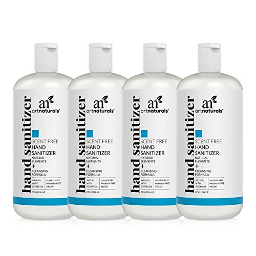 Artnaturals Hand Sanitizer Gel Alcohol Based (4 Pack x 7.4 Fl Oz / 220ml) Infused with Jojoba Oil, Alovera Gel & Vitamin E - Unscented Fragrance Free Sanitize