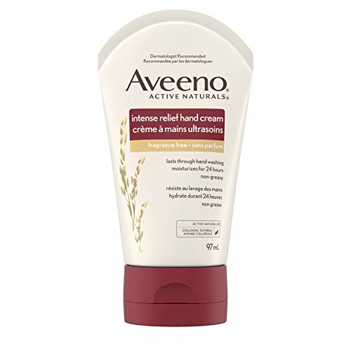 Aveeno Skin Relief Intense Moisture Hand Cream lasts through hand washing and helps moisturize for up to 24 hours. This rich hydrating cream is clinically shown to help moisturize dry skin, leaving your hands feeling soft and smooth. The fast-absorbing, non-greasy formula contains rich emollients and soothing oatmeal and is clinically shown to help moisturize and relieve skin. Aveeno Skin Relief Intense Moisture Cream is dermatologist recommended, steroid-free and fragrance-free, so it's gentle enough for sensitive skin.
