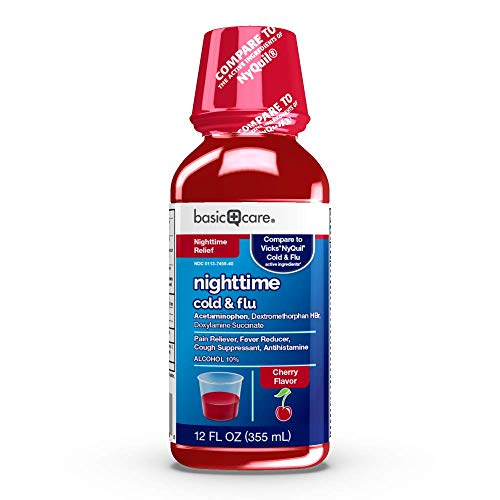 Basic Care Nighttime Cold & Flu, Cherry Flavor, 12 Fluid Ounce