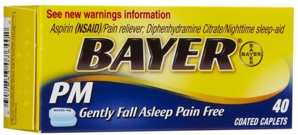 Bayer Aspirin Pain Reliever/ Fever Reducer, PM Nighttime Sleep Aid, 40-Count Coated Caplets (Pack of 5)