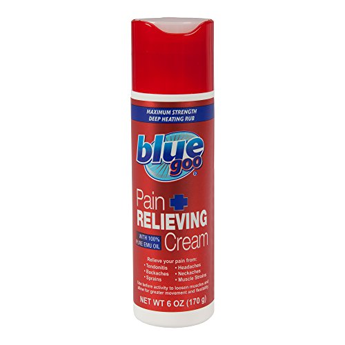 BLUE GOO Pain Relieving Cream, 6 Ounce, Maximum Strength, Deep Heating Rub for Back/Neck Pain, Headache, Muscle/Joint Pain, Arthritis, Sprains, Bursitis Strains, Made with 100% Pure EMU Oil