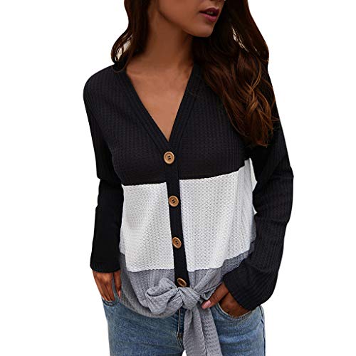 BNisBM Blouses for Womens Long Sleeve V Neck Button Down Shirts Tie Front Knot Henley Tops Loose Blouses (Black,S)