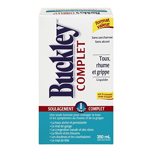 Famous Canadian made BUCKLEY'S SYRUP 'COMPLETE' for fast acting relief from symtoms such as coughs, nasal and sinus congestion, fever, sore throat pain, and minor aches and pains. This is a VALUE LARGE SIZE BOTTLE OF 350 ml.