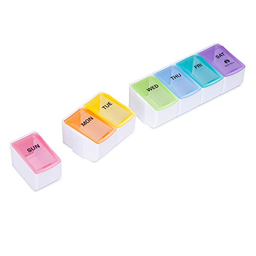 BUG HULL 7 Day Pill Organizer Detachable, Weekly Pill Case, Pill Container for Pills/Vitamin/Fish Oil/Supplements - Rainbow
