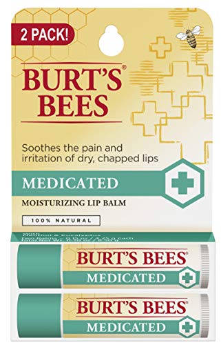 Burt's Bees 100% Natural Medicated Moisturizing Lip Balm with Menthol & Eucalyptus - 2 Tubes