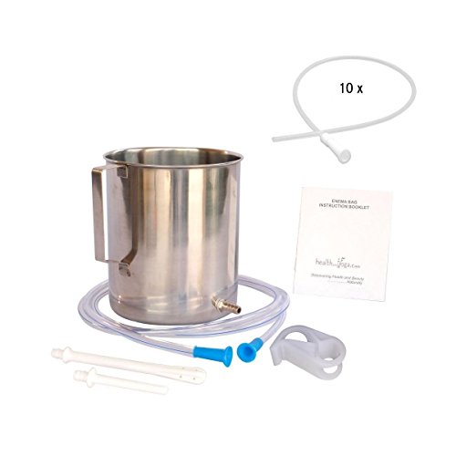 HealthAndYoga(TM) Combo: Superior 2 quart Stainless Steel Enema Kit - Medical Grade Tubings