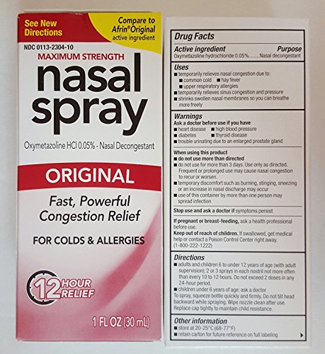 Compare to Afrin Original Perrigo Original Nasal Spray 12 Hour Spray 1 Fl Oz. (30ml) Pack of Two