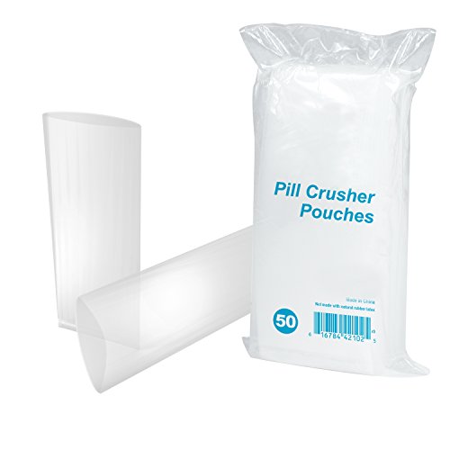 Convenient for pills and a wide variety of other uses. See-through plastic not only protects contents, but allows for quick identification. • Clear plastic pouches, 2" × 4.5" • Makes swallowing medication easier • Fits most pill crusher machines • Helps eliminate cross-contamination and unnecessary cleanup • Disposable • Not made with natural rubber latex