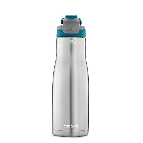 Literally keep your cool all day with the Contigo AUTOSEAL chill Vacuum-Insulated Stainless Steel water bottle, 32 oz. Whether you’re running around town or on the treadmill, your water will stay cold up to 32 hours thanks to double-wall Vacuum insulation. Press the AUTOSEAL button to drink and release to seal after every Sip. With AUTOSEAL technology, This reusable, BPA-free water bottle is spill- and leak-proof. When you’re done hydrating, flip down the integrated spout cover to help protect mouthpiece from dirt and germs. The lid also has a conveniently integrated carrying handle for easy transport from car to Yoga class. At the end of the day, throw lid onto the top rack of your dishwasher; hand-wash stainless steel body.