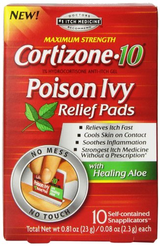 Cortizone 10 Poison Ivy Relief Pads provide an all new, no mess way to quickly and safely provide relief for exposure to poison ivy. Relieves the itch and inflammation with the strongest itch medicine you can buy without a prescription. Immediately cools the irritated skin on contact. Soothes the rash area and skin with aloe, botanicals and oat extract.
