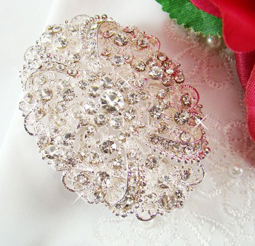 Silver Clear Beautiful crystal brooch that adds a sparkling vintage touch to your wedding dress or bouquet. Measures 2 1/4" x 1 3/4"