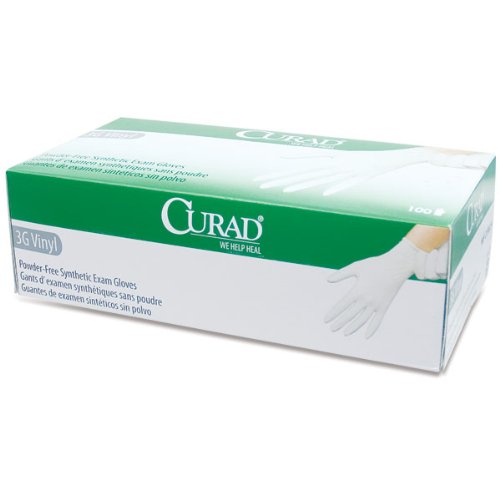 Curad Powder-Free 3G Vinyl Exam Gloves- Extra Large -Box of 100