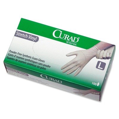 Curad – Synthetic Exam Glove, Powder-free, Vinyl, Large, 100/BX, Sold as 1 Box, MII CUR8226R