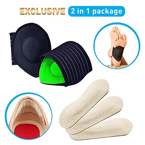 Arch supports reinforces foot & heel stability, helping in taking balanced steps. Absorb shock and aid in relieving foot & heel pain. Leather grips minimize rubbing, chafing and discomfort at the shoe heel, offering comfortable padding and allowing you to wear all types of footwear, feeling unprecedentedly comfortable! Made from high quality, anti-bacterial & odor-free materials, adding reinforced wrap stitching and using durable leather, our products withstand daily, continuous use! Exceptionally easy to use, just slip on your arch wraps or stick our heel grips in any pair of shoes, and you're ready to go!Don't You Wish Walking Felt Better?