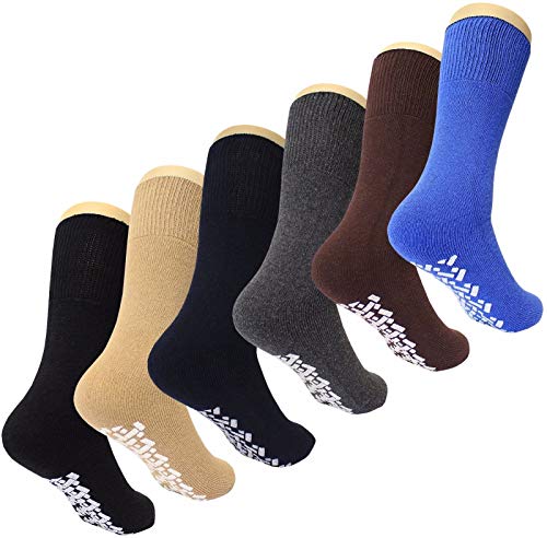 Diabetic Non Skid Slipper Socks /w Grippers for Men – 6 Pairs
