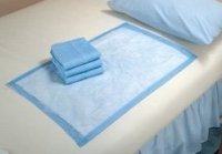 Each underpad is 23" x 36". The underpads are constructed soft fluff fill. Each underpad has a waterproof, non-skid blue backing.