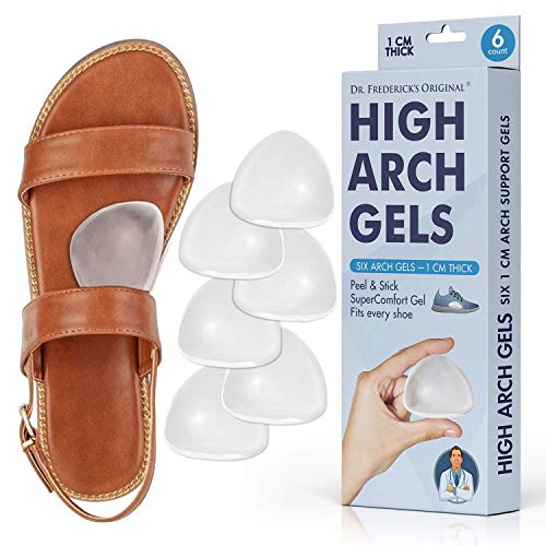 Dr. Frederick's Original High Arch Support Gel Inserts - 6 Pcs - Peel & Stick SuperComfort Gel - Great for Sandals - Dress Shoes - Women & Men