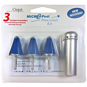 Quickly remove calluses at home with the salon-quality Emjoi Micro-Pedi Precision Accessory Kit Now you can use your Emjoi Micro-Pedi to remove calluses and corns in hard-to-reach areas, like between and under your toes. Place one of the three cone tools in the roller of the Micro-Pedi. Battery-powered rotation action spins the cone tool at 1800 RPM, helping eliminate the effort required to remove calluses and corns for salon-quality foot care at home.