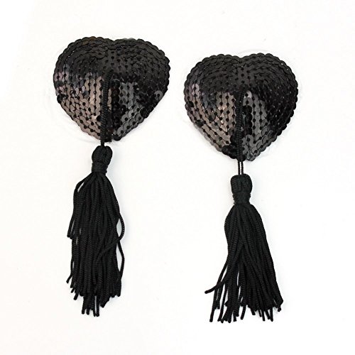 EUBUY Heart Tassel Bling Bling Nipple Covers Breast Bra Pad Sticker Pasties (Black)