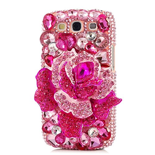 EVTECH(TM) 3D Handmade Crystal Rhinestone Beads Pink Crystal Rose Diamond Bling Cover Hard PC Back Case for Samsung Galaxy S3 I9300 T-Mobile T999 L710 Sprint/T999 T-Mobile/i747 AT&T/i535 Verizon(100% Handcrafted)