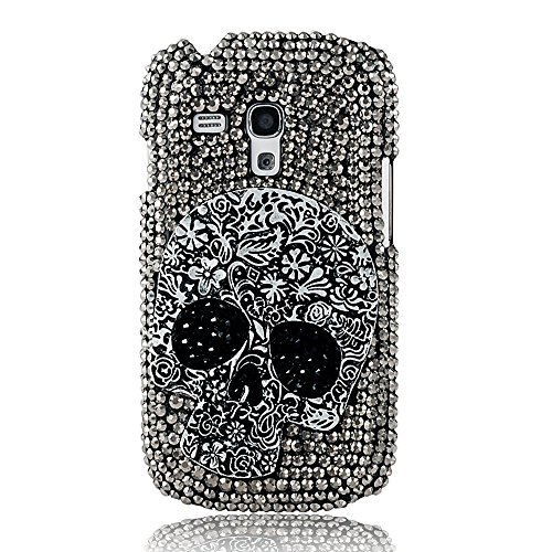 EVTECH(TM) 3D Handmade Crystal Skull Bead Rhinestone Diamond Bling Cover Hard Black Case for Samsung Galaxy S3 Mini 8190(Not For SAMSUNG S3) (100% Handcrafted)