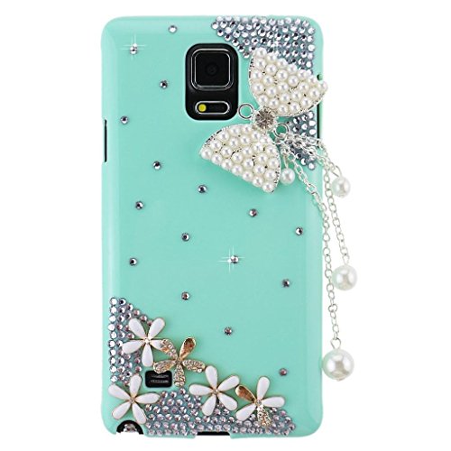 EVTECH(TM) for Samsung Galaxy Note 4 SM-N910S, SM-N910C 3D Handmade Luxury Shining Glitter Crystal Diamond Rhinestones Blue Hard Back Case Cover (100% Handcrafted)