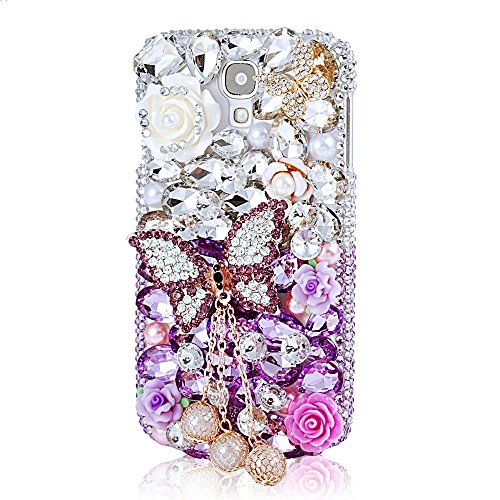 [Bling case] for Samsung Galaxy S4 Mini,EVTECH(TM) 3D Handmade Crystal Rhinestone Beads Butterfly Diamond Bling Cover Hard PC Back Case(100% Handcrafted) (Samsung Galaxy S4 Mini I9195 GT-i9190)