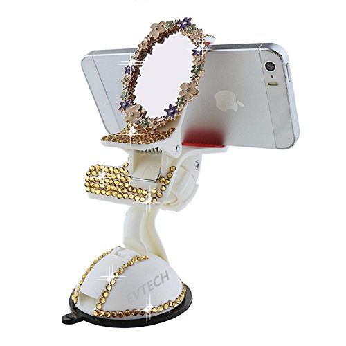 EVTECH(TM) Universal Luxury Transparent Colorful Bling Handmade Crystal Diamond Rhinestones Universal Multi-function Portable 360 Degree Rotating Suction Cup Mini Desk Car Mount Clip Stand Holder Car Windshield & Dashboard Mount for Smartphones Mobile Pho