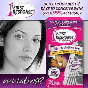 Kit Includes: 20 Tests. Predicts the 2 days when you are most likely to become pregnant. Easy-read result line. First Response Easy-Read Ovulation Predictor Test is an easy way to help you find the 2 days when you are most able to become pregnant. It quickly and accurately detects the increase in luteinizing hormone in your urine (LH surge), which normally occurs 24-36 hours before ovulation. Your two most fertile days begin with the LH surge. You are most likely to become pregnant if you have intercourse within 24-36 hours after you detect your LH surge. Easy to Use: One easy step. Simply hold the stick in your urine stream. No cup. No mess. Accurate: Over 98% accurate in laboratory studies. Fast: Easy-read results in just 5 minutes. Easy to Read: One purple line tells you the test is working. The appearance of a second line that is similar or darker in color than the first line means that you should ovulate within 24-36 hours. Now with easy-read result line. Convenient: Test any time of day. Pregnancy test inside! Test 5 days sooner - than other leading pregnancy tests. For in-vitro diagnostic use. Not to be taken internally.