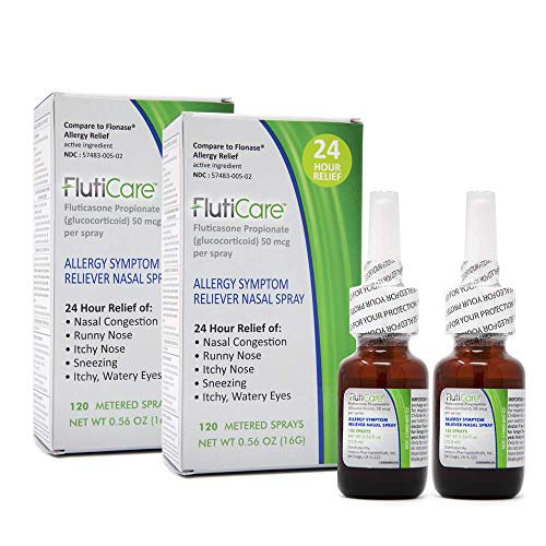 FlutiCare® 120 metered Nasal Sprays (2 Pack), Fluticasone Propionate 50mcg, Relief During Allergy Season from Pollen, Dust, Dander, Both Indoor and Outdoor allergens - 2 Month Supply